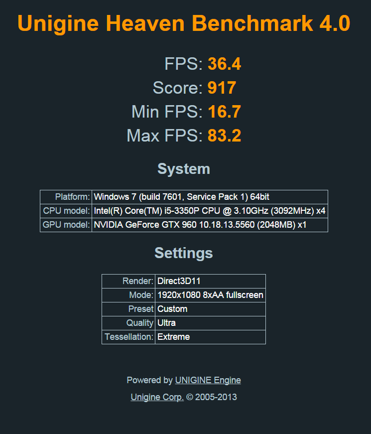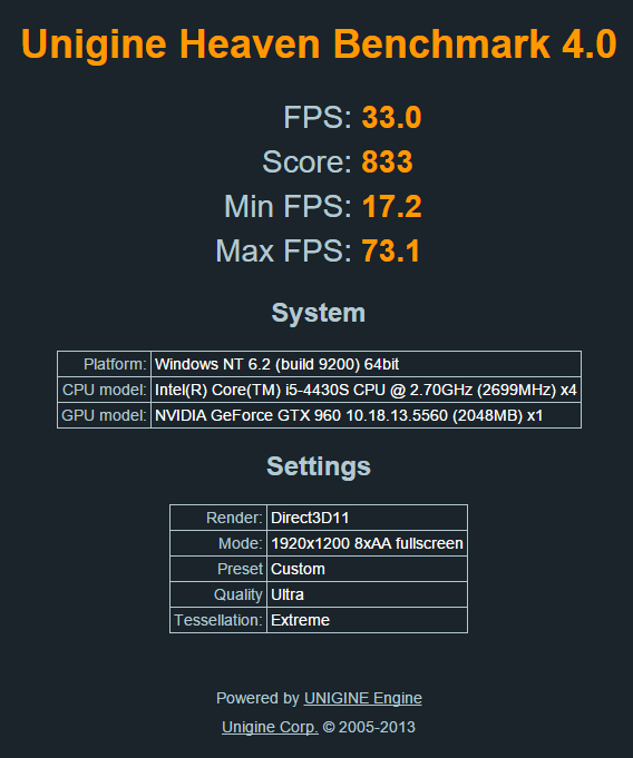 Re: Změřte výkon s ostatními v Unigine Heaven 4.0
