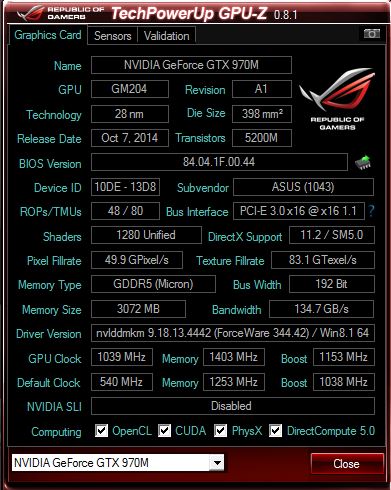 ASUS ROG G751JT-T7009H / i7-4710HQ 2.5Ghz / 8GB / 256 GB SSD + 1TB HDD / GeForce GTX 970M