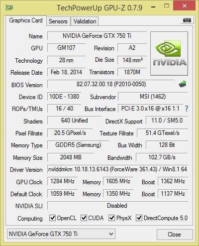MSI GTX 750Ti Gaming, ASIC 71,7%