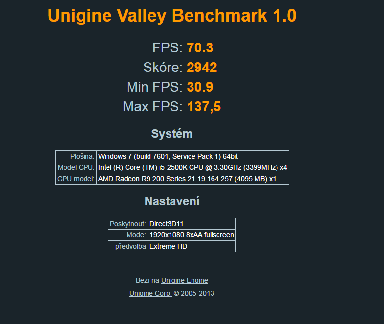 Re: Změřte výkon s ostatními - Unigine Valley 1.0