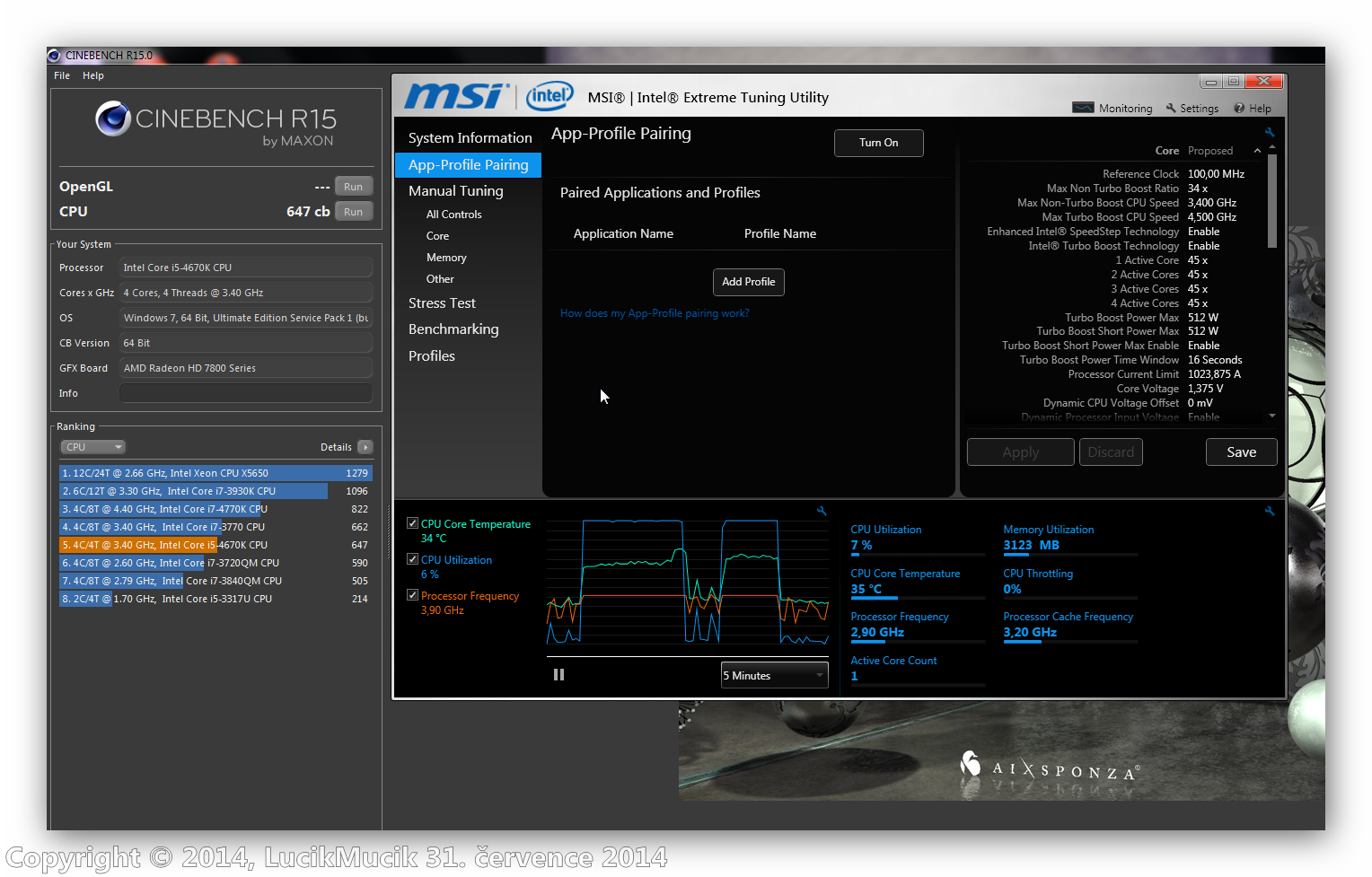 klasika.. i3 default 3,3Ghz a HD 7790 pretaktovaná na 1200 Mhz...