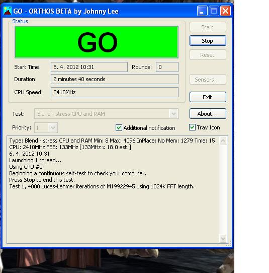 Jenom klikni na START, nech to chvilku jet a až se přestane zvyšovat teplota na CPU tak to vypni a tu teplotu napiš sem.