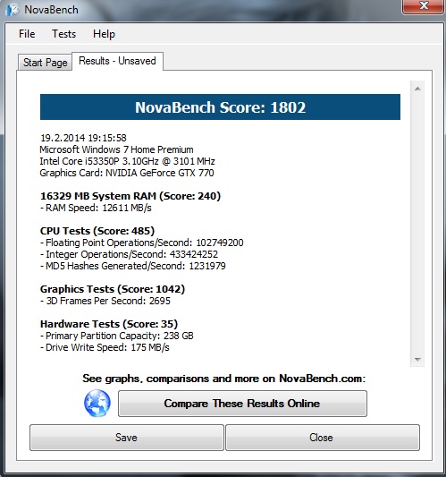 Tak po upgrade grafiky na vyšší model bych čekal vyšší grafické score.Divné,že grafika při grafickém testu jela jen na 84 %. S předchozí GTX 560 jsem měl score u grafiky 595.
