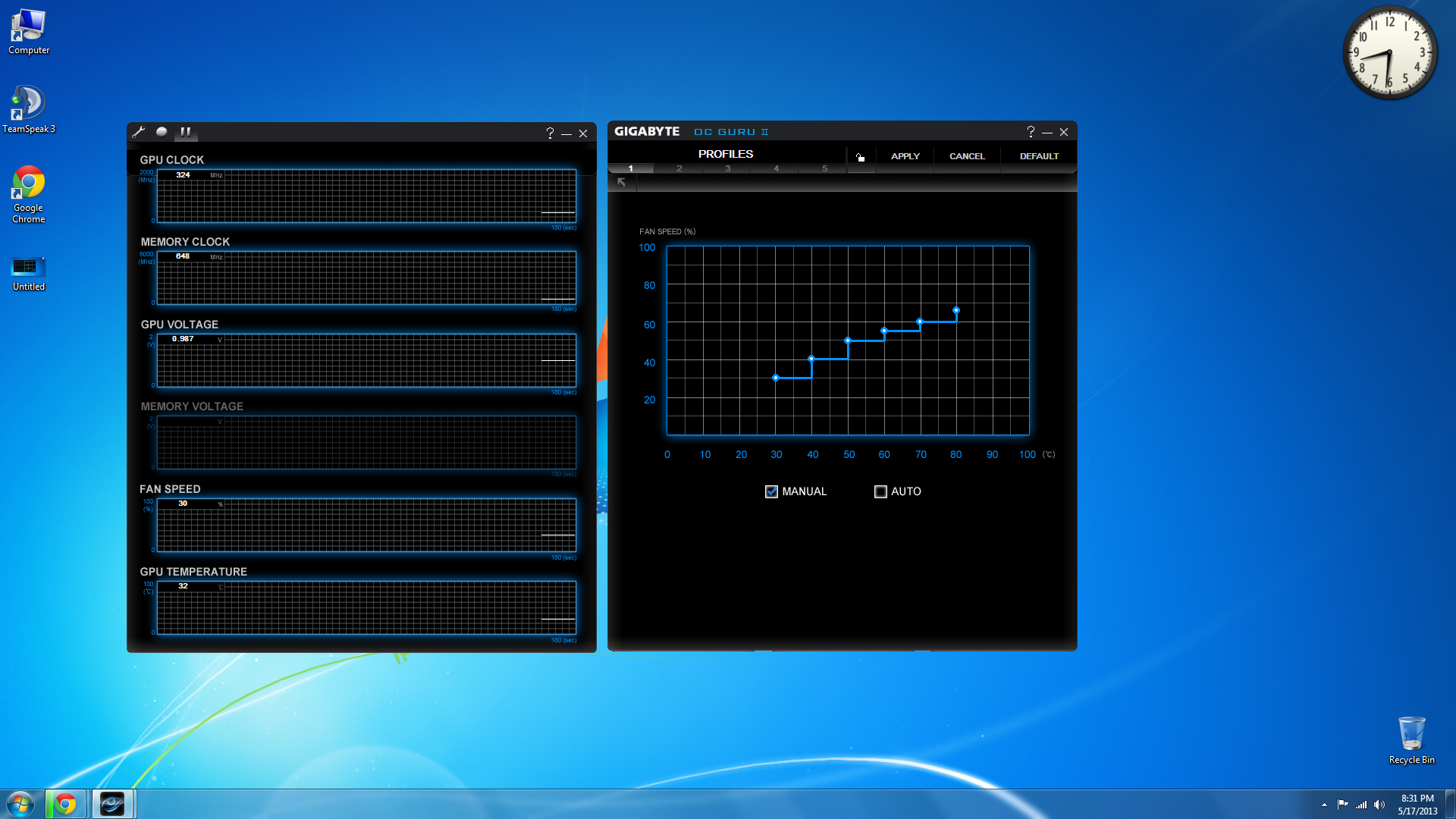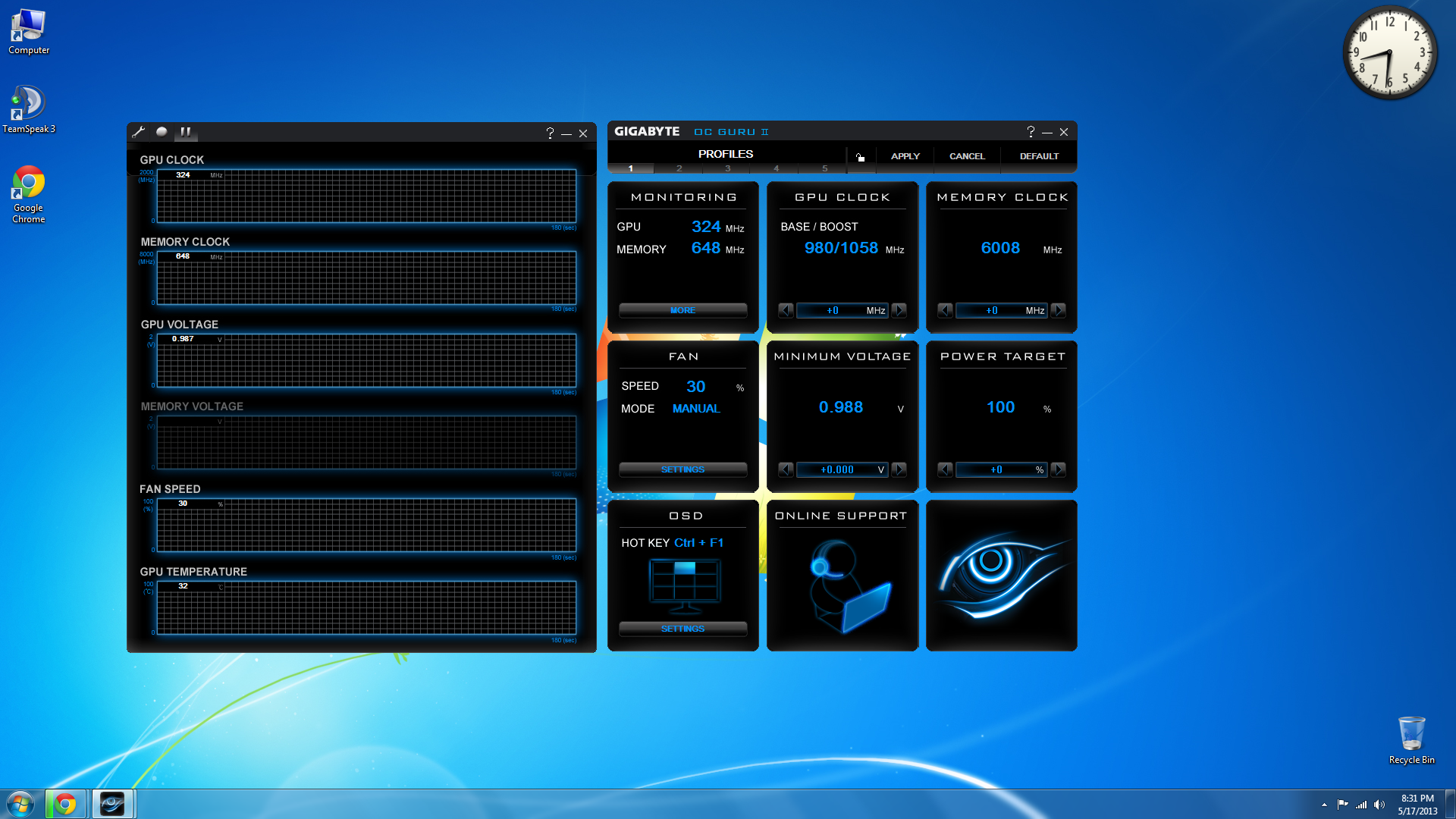Cus tak jsem se rozhodl zkusit nataktovat moji grafiku. Moje sestava Case: Corsair 500R Carbide Series Zdroj: Corsair TX650 V2 Mechanika: ASUS DRW-24B5ST/BLK/B/AS Operační paměť: Kingston 8GB 1600MHz HyperX blu Edition Procesor: Intel Core i5-3570K Základní deska: MSI Z77A-G45 Pevný disk: Western Digital Caviar Black 1000GB Grafická karta: GIGABYTE N670OC-2GD. Mam program OC GURUII tak jestli to mam nataktovat v něm a kde jaky hodnoty přidat a na kolik viz jeden z obrazku v přiloze. Jinak co řikate na moji sestavu co by ste na tom zmenili do budoucna nebo by ste to nechali takhle behat jeste par let? :))