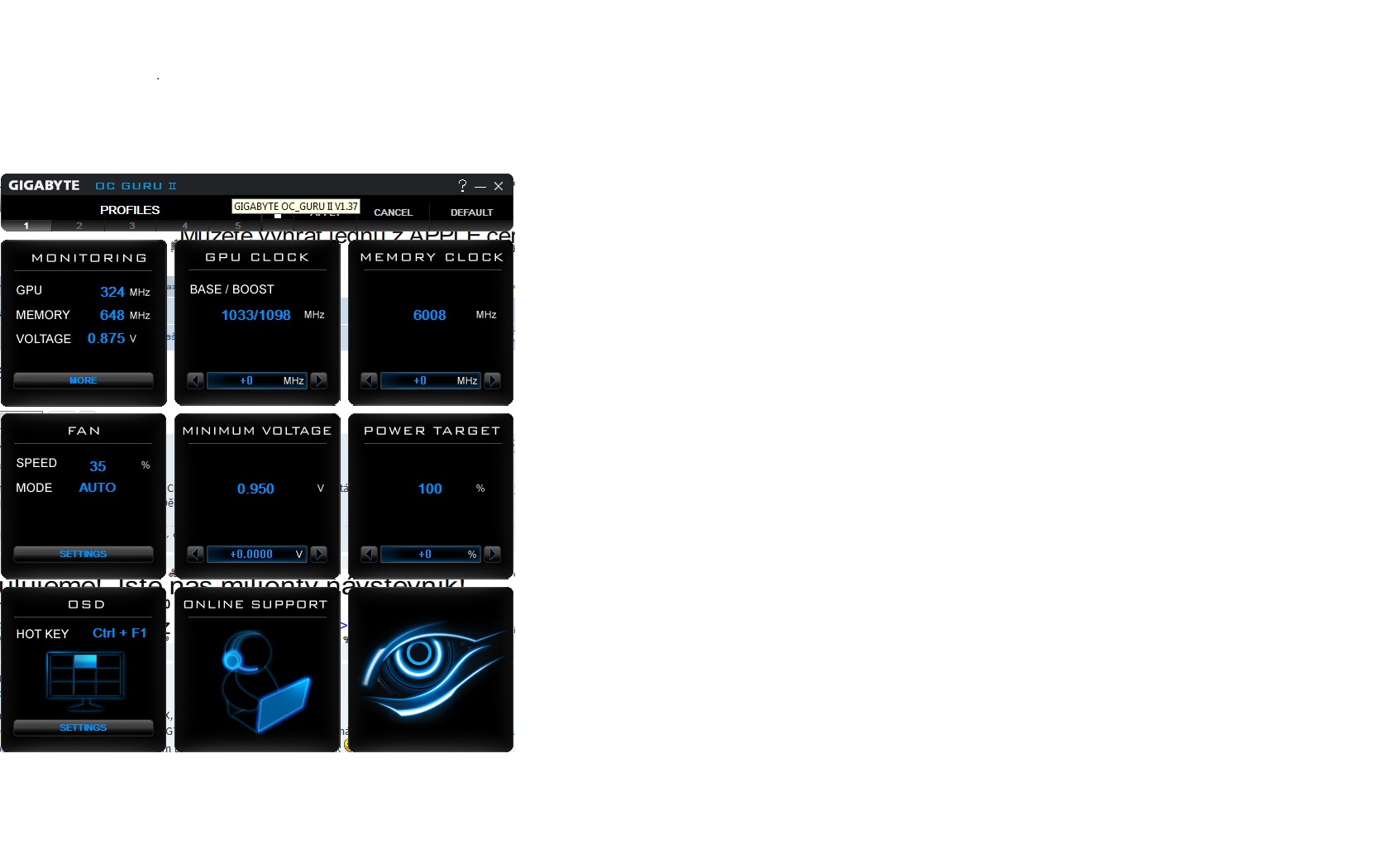 No dočetl jsem se že by to bylo dobré taktovat v tomto programu když je to karta Gigabyte. Tady je screen z programu. Jak mám prosím které hodnoty změnit aby došlo ke zvýšení výkonu? Díky všem za tipy.