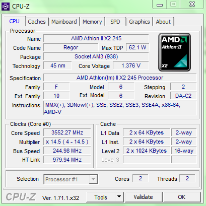 Zdravím podařilo se mi nataktovat procesor AMD Athlon II X2 245 z 2.90 Ghz na 3.5 Ghz a myslím že by se to ještě dalo trochu pozvednout,po přetaktování stoupla teplota o 2 stupně celsia a teď má procesor v zátěži 36 stupňů.Potřebuji ho ještě trochu pozvednout protože mám obavy z toho jestli bude stíhat mo novou grafickou kartu kterou si chci v nejbližžší době zakoupit.Nejvíc fascinující je že jsem vůbec nečekal tak nízké teploty,protože používám pasivní chladič od výrobce.Přikládám malý screen pro přehled a za radu jakoukoliv budu velmi rád.