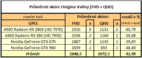 Chtěl jsem vytvořit ještě tabulku kde by byly nějaký průměry jednotlivejch GPU v obou rozlišeních, nicméně nevím jak to přesně udělat, takže tady je zatím jen takovej nástřel.