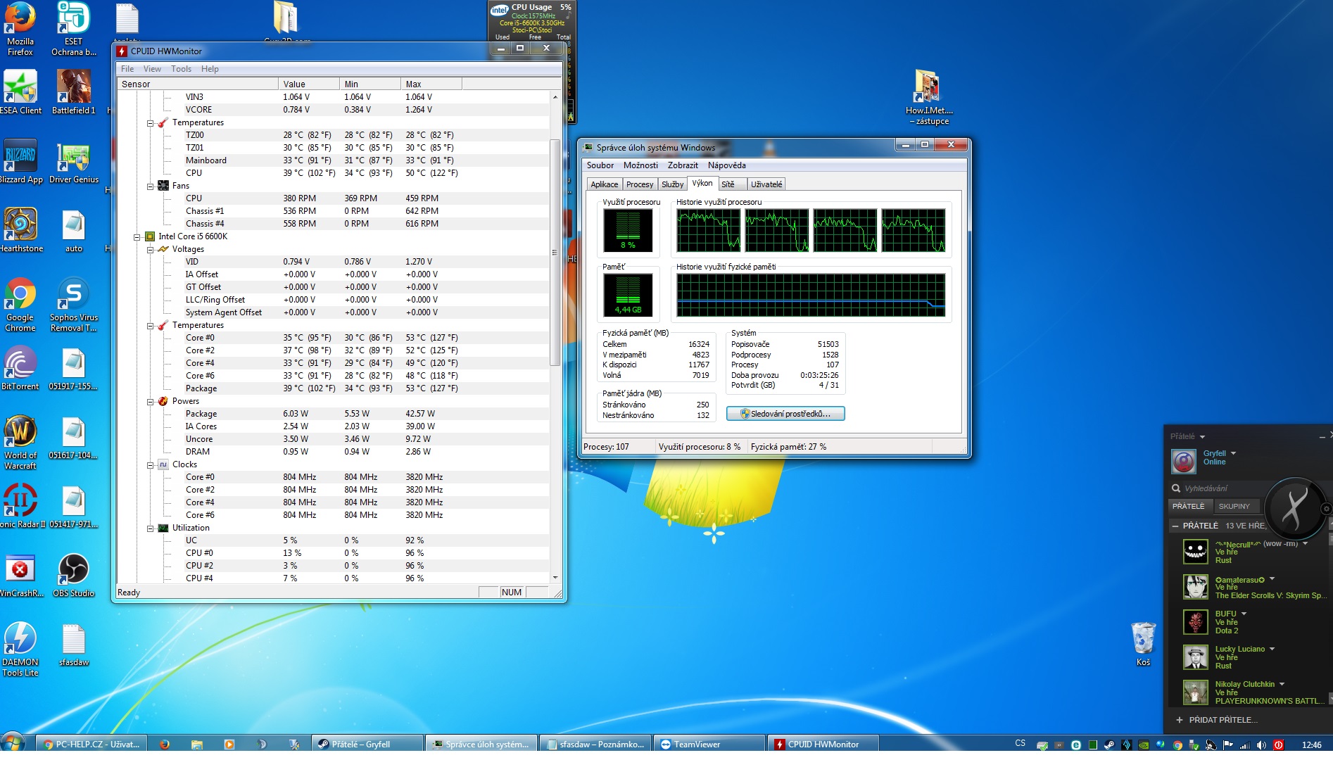 Uživatelsky jednoduší je zapnout něco, co už win má a k tomu HWMonitor, který se hodí vždy a je přehledný i pro jakéhokoliv laika.