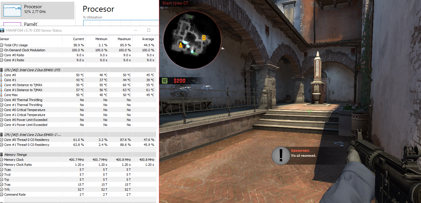 Zátěž u hry CS:GO (Nejhranější v mém PC)