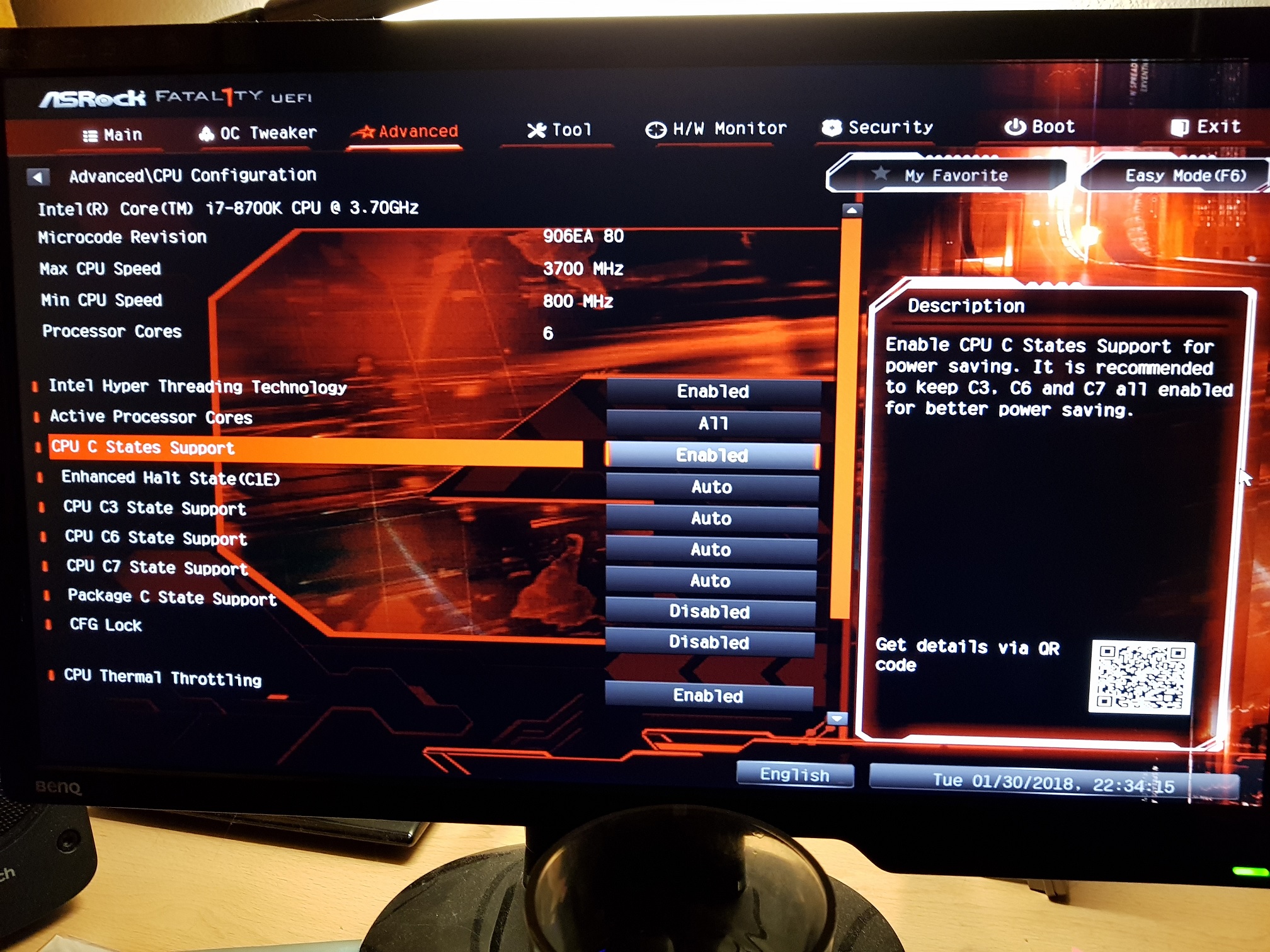 Dal jsem celé CPU C States Support na disabled. Podle mě, je to tak lepší, kvůli OC, udělal jsme správně?