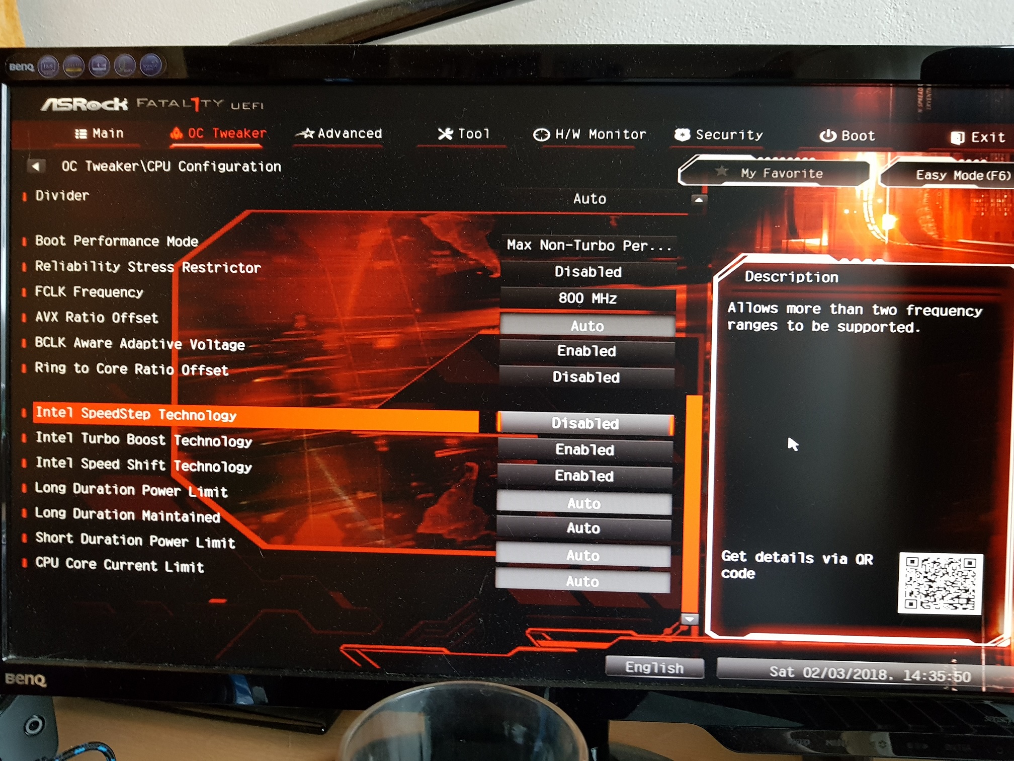 Intel SpeedStep: Disabled