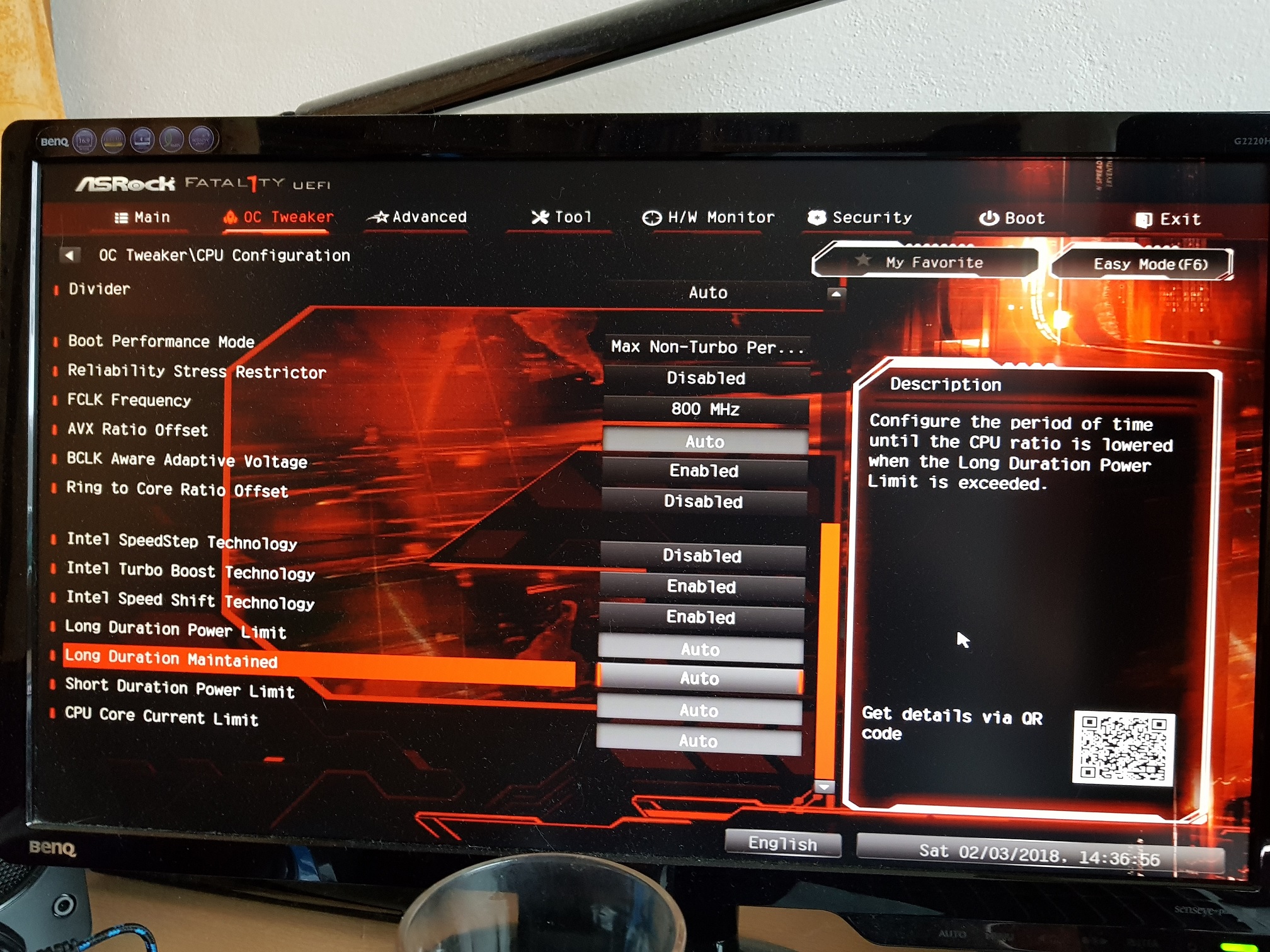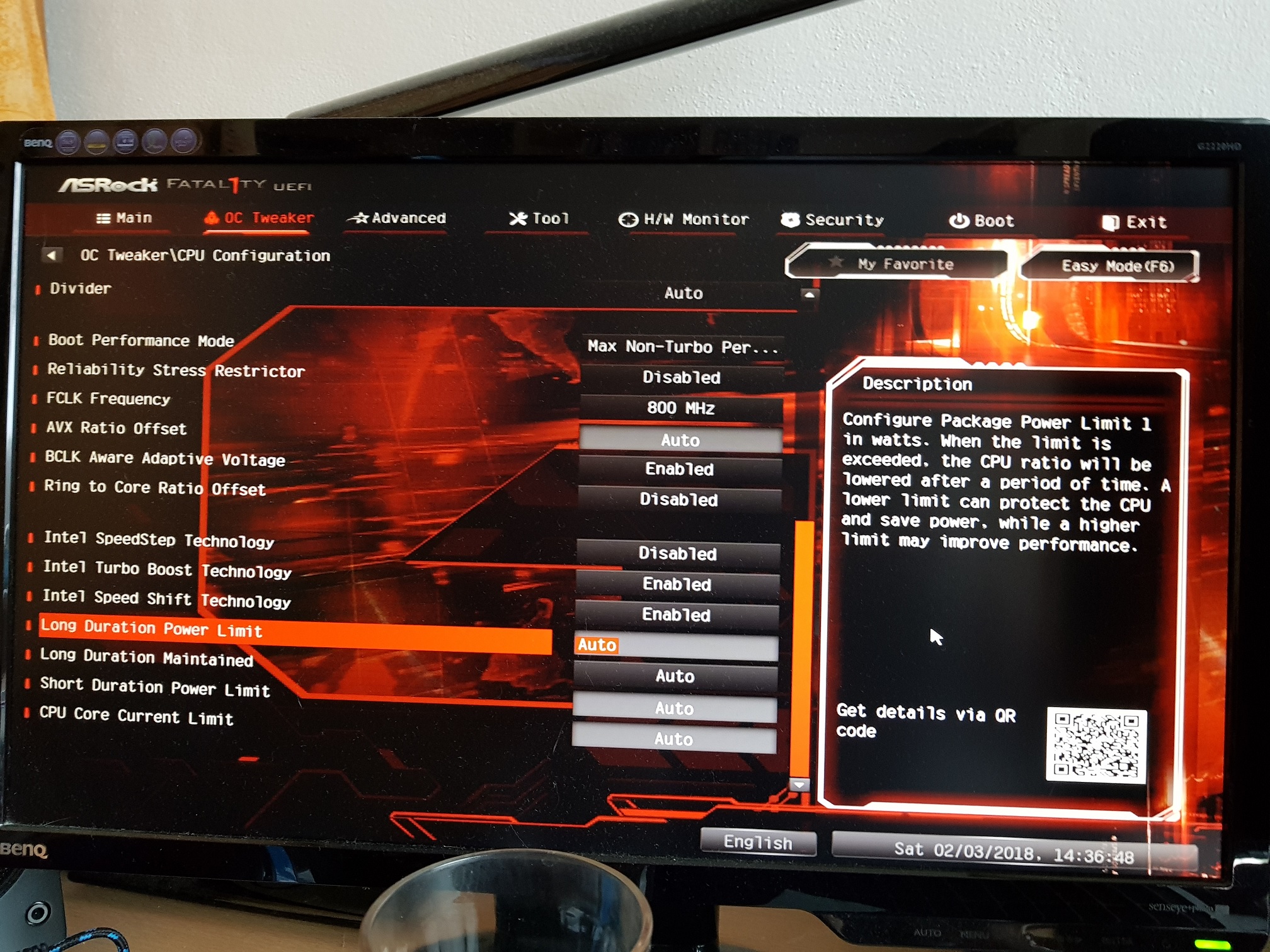 U tohoto jestli bych neměl nastavit nějakou konkrétní hodnotu? Jestli to takhle nemá negativní vliv na OC. + to samé s Short Duration Power Limit.