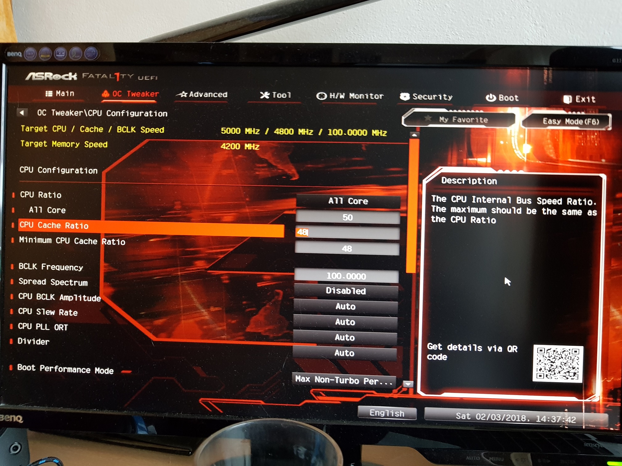CPU Cache Ratio nemusíš hnát úplně na hranici, pokud s 48x nejsi stable zkus snížit. Cache Ratio nemá dramatický dopad na výkon, 47/46x můžeš klidně nechat kdyby 48x způsobovalo nestabilitu.