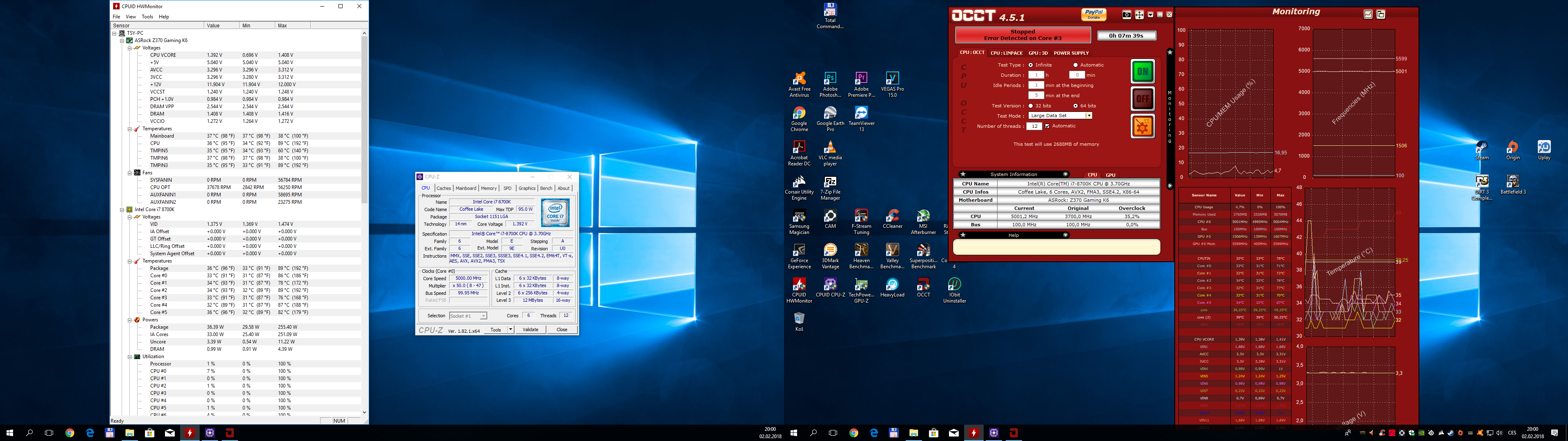 A Prime95 se choval podobně, že potom napsal error u některých z jader a test sice jel dál, ale automaticky se u nich snížilo využití ze 100% třeba na 40% atd. Ale od 1,39V jsem v Prime už netestoval.
