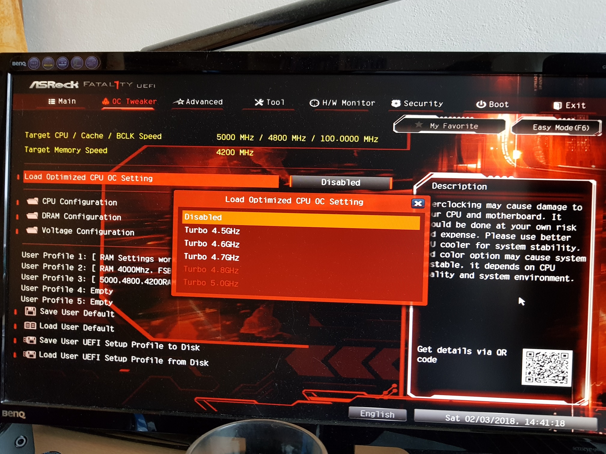 + Moje deska nabízí i přednastavené OC profily až do 5GHz: