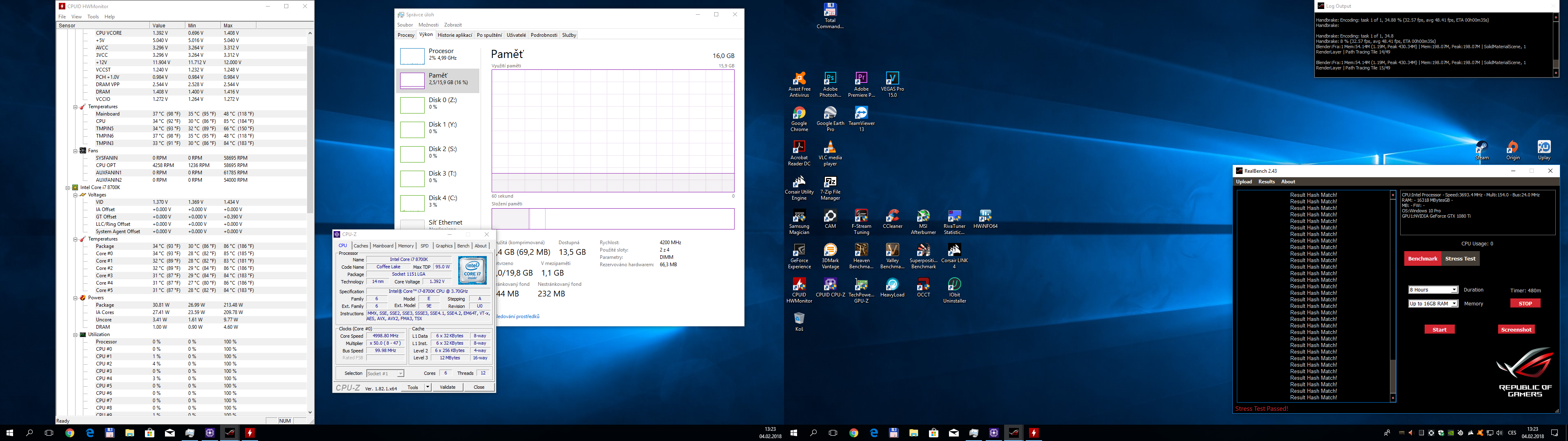 Nechal jsem přes noc RealBench 2.43 s nastavením na 8 hodin (víc tam nejde nastavit) a s využitím až 16GB RAM.