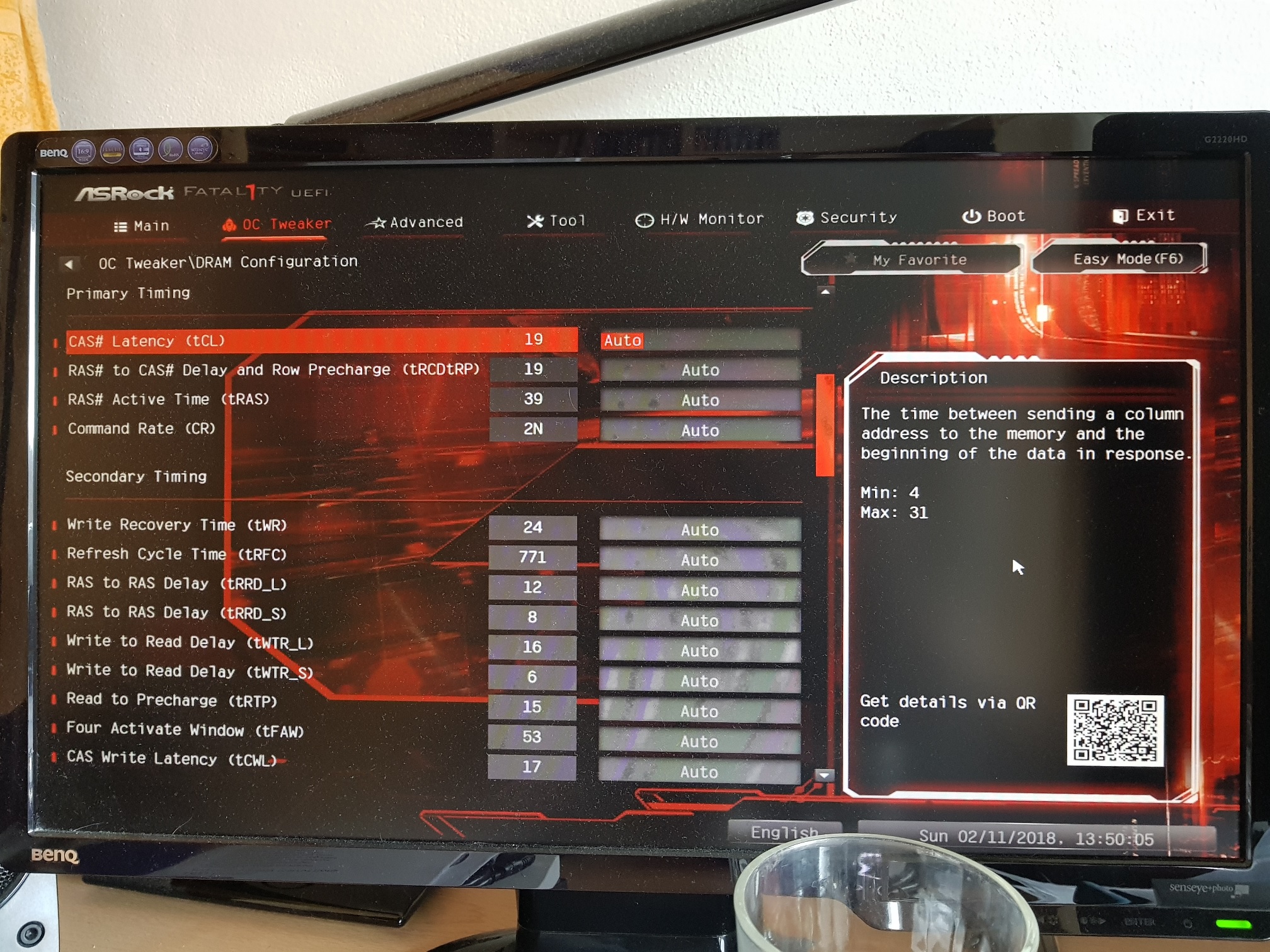 Zkus primární časování 19-18-18-39, pak 18-18-18-39 (v BIOSu máš spojené nastavení tRCD a tRP, tudíž to bude vypadat jako 18-18-39).