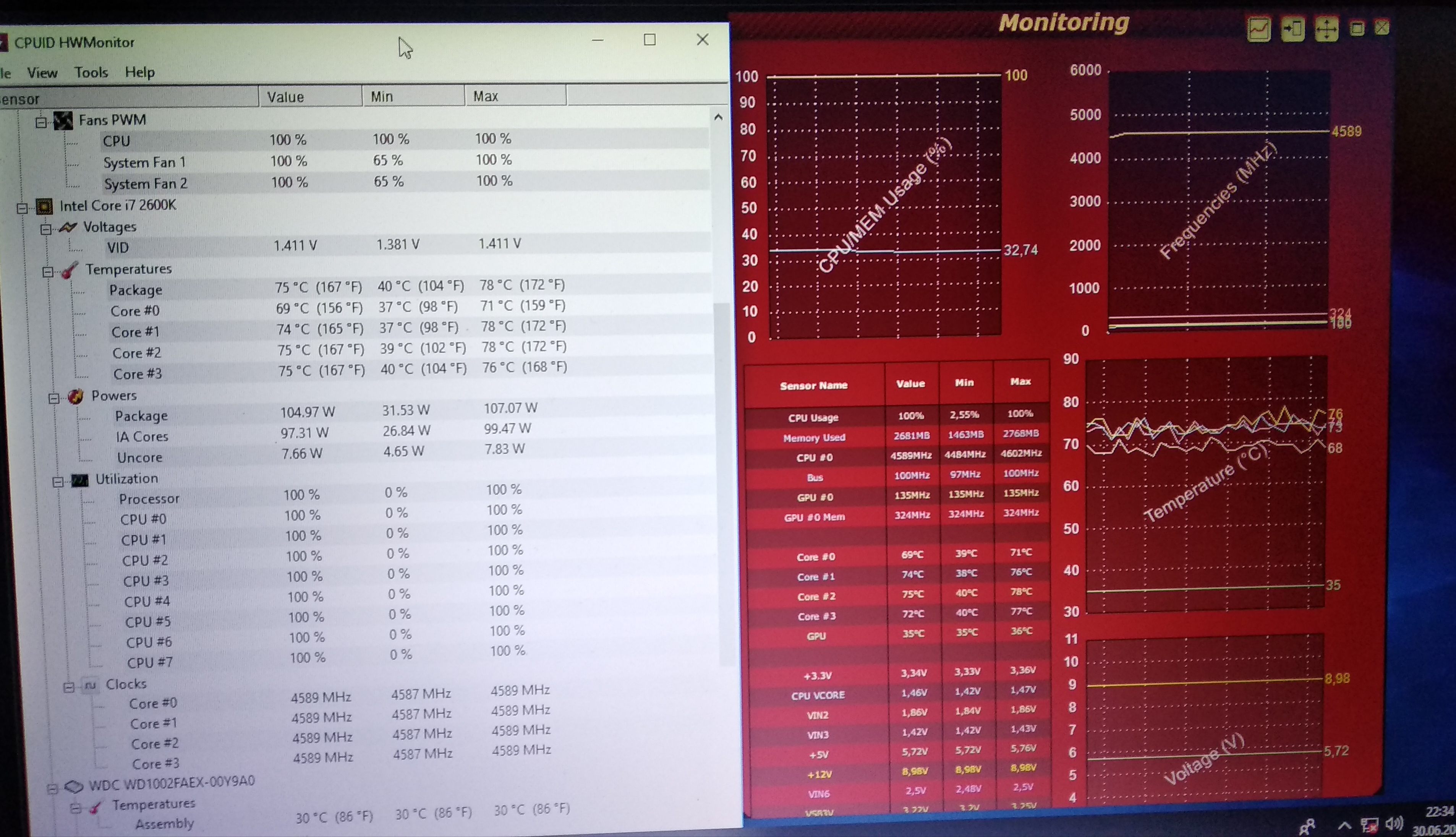 Zdravim, mam tu desku MSI P67a-gd65 + i7 2600k, tak jsem si řekl, že zkusím, kam to stabilně dostanu, bez prehnanych teplot. Zvedl jsem cpu ratio na 46x, napětí dal na 1.4, ale kdyz pustím occt ukazuje mi max napětí 1.46V a Hw monitor zase 1.416V, je nějaký prográmek, kterému se dá 100% věřit? Viz foto.