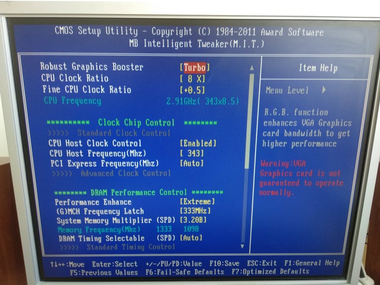 Super, takže máš ještě LGA775, tam bude nejspíš problém se "STRAP" (dělička severního můstku). Pokud si pamatuji správně, tak Gigabyte to mívali navázané na násobič VRAM. pokud vidím správně tak na těch screenech je to "System memory multiplier", STRAP potom udává to písmeno za číslem (na screenu B). Ty v podstatě měníš FSB (= CPU host frequency * 4), ale tím měníš i takt severního můstku, musíš ho udržovat kolem 1333 MHz (některé desky zvládnou i více, ale tvá asi ne). Bohužel už si nepamatuji, jaké písmeno odpovídá jaké děličce, musíš vyzkoušet (už je to dávno co jsem se tím zabývat :/ )