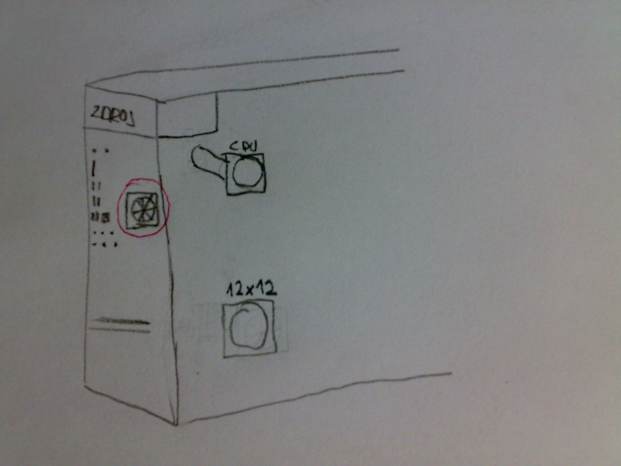 Potom normálně ten chladič u CPU, a to je ten problém. Když je tam ta "roura" která to vyvádí z case, a já chci přidat větrák dozadu, můžu ho dát tak, aby foukal, nebo tak, aby odtahoval? Bojím se aby nějak neovlivňoval ten CPU chladič.