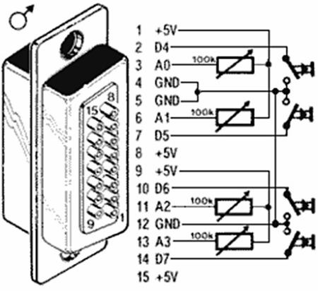 Na obrázku je obsazení klasického game portu dle půvední specifikace IBM bez MIDI. Pokud se ti podaří převést signály z analogového zařízení na sériový přenos USB jen pomocí drátů, dej vědět, určitě by se to hodilo více lidem