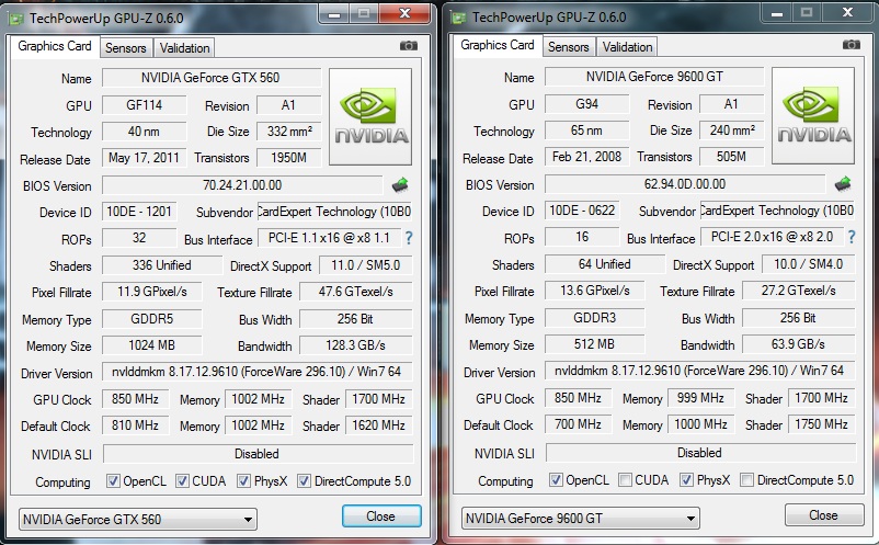 dneska jsem čistou náhodou našel mou starou kartu Gainward 9600 GT 512MB a jenom mě napadlo ... Šla by nějak zapojit k mé Gainward GTX 560 1GB, aby byla používána pouze pro PhysX ? Došlo mi, že přes SLI by to nešlo, jelikož to nejsou GPU ze stejné řady a navíc jsou jinak velké paměti ... Klidně bych to zkusil, ale bojím se, že si nějak poškodím GTX 560, což samozřejmě nechci... Pokud by někdo věděl, prosím, ozvěte se :) Díky