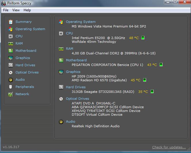 Intel Pentium Dual Core E5200 2.50 GHZ|GIGABYTE Radeon HD 6570 1024 MB DDR3|PEGATRON CORPORATION Benicia|Intel G33 (Bearlake-G) + ICH9R|2x ELPIDA EBE21UE8AEFA-8G-E