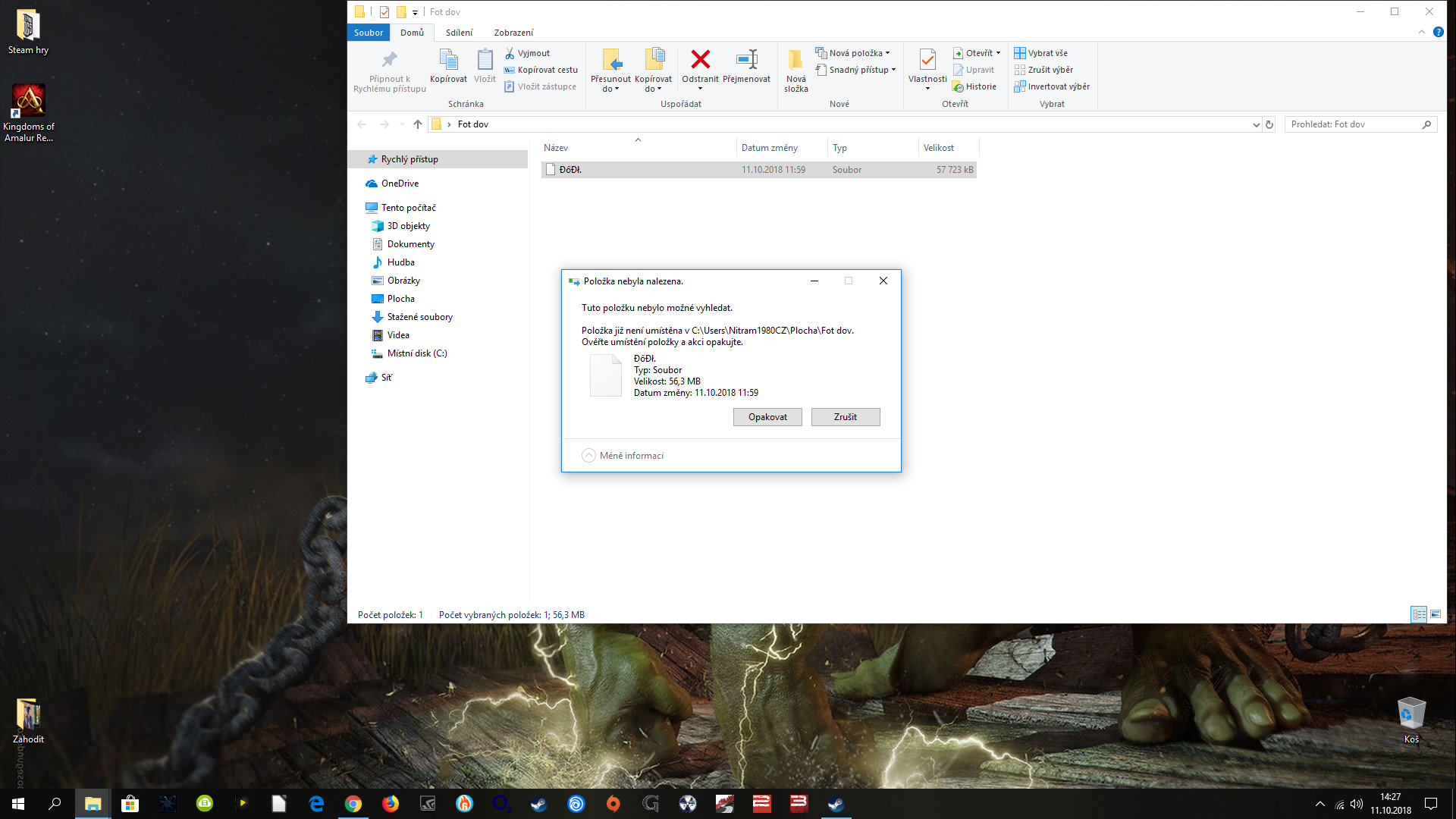 Dobrý den mám problém bratr mi přinesl na flešce fotografie z dovolené v raru dak jsem je dal rozbalit ale mezi nima byl jeden soubor který nelze smazat přepsat nic nemohu se ho zbavit poradí někdo jak ho odstranit díky. Dělá mi to toto viz. foto