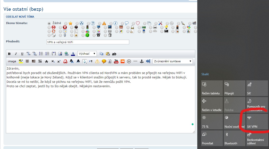 Proto se chci zeptat, jestli by to šlo nějak obejít. Nějakým nastavením. Nebo jestli by pomohlo pokud to jde.. přidat NordVPN rovnou do Windows - když se rozklikne centrum oznámení.