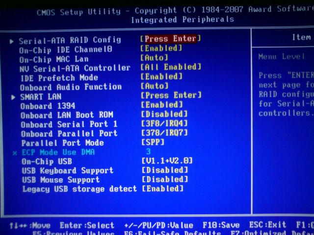 Na stránce BIOSu Integrate Peripherals na řádku Serial ATA RAID Config, klikni na press Enter a vlož sem co tam je nastavené. Stejně tak na stránce Advanced BIOS Feature na řádku Hard Disk Boot Device, to rozklikni na Press Enter a vlož sem to nastavení.