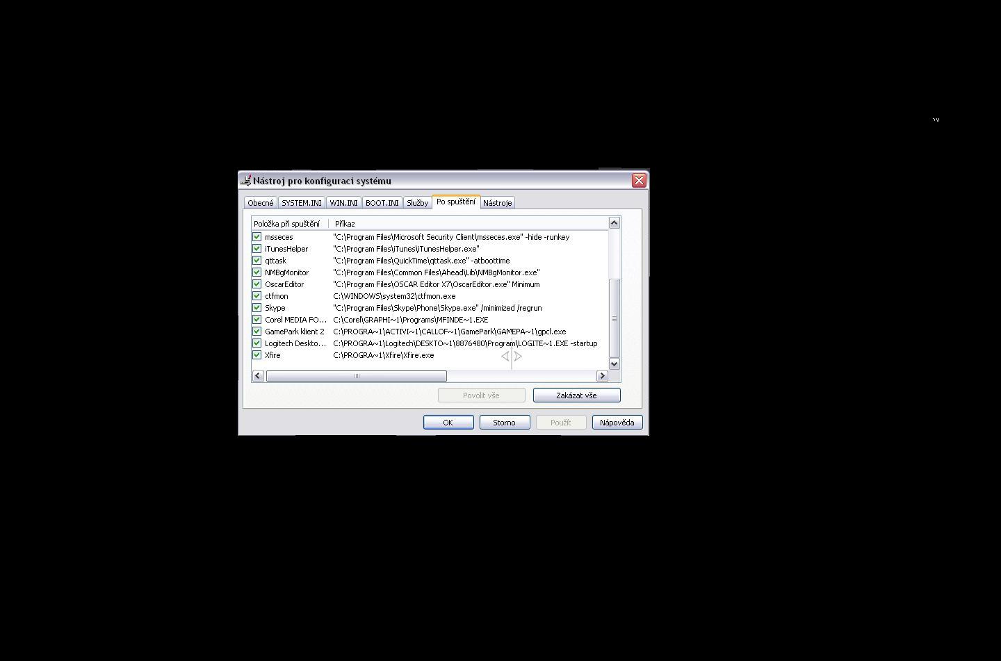 Použité ovládací přepínače :: c:\documents and settings\Uzivatel\Plocha\CFScript.txt