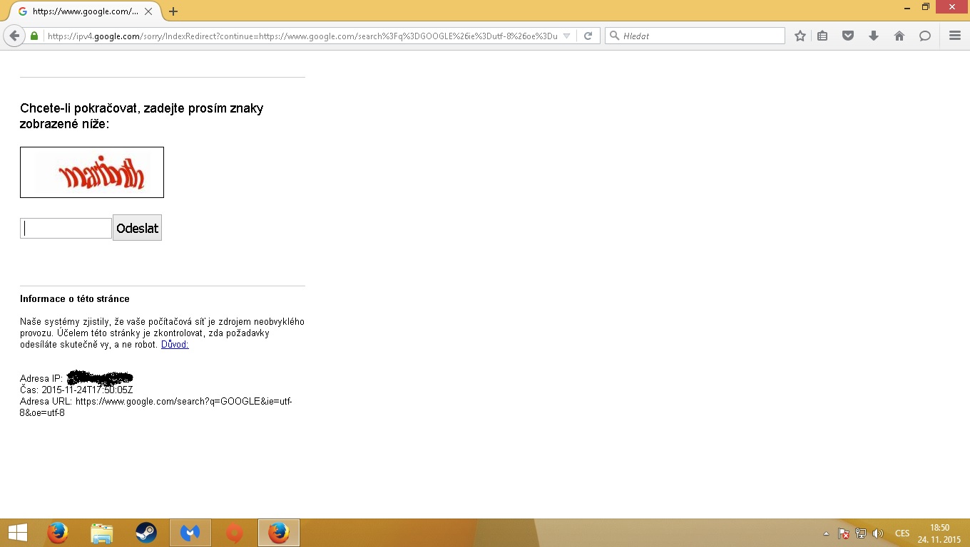 Nechtěl jsem důvod proč mě v google nemají rádi, ale pomoct to dát pryč :) Nechtěl jsem měnit proxy, protože budu mít pomalejší nebo rychlejší internet než ostatní v domácnosti. Nakonec jak vidím, tak jsem musel. Snad o mě brzo ztratí zájem a já budu moc dál použivat internet normálně.
