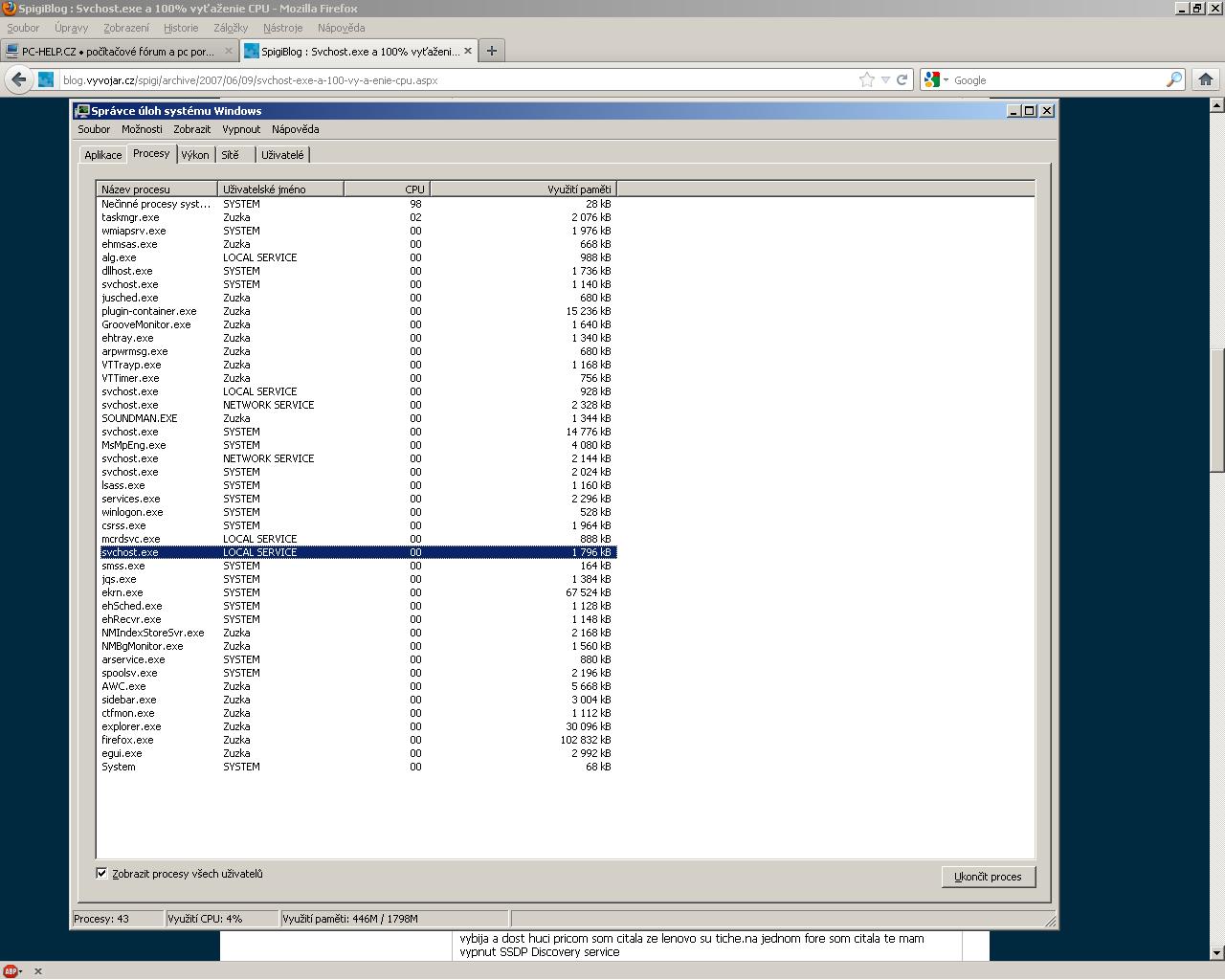 Co dělá soubor s názvem svchost.exe - ve správci jej mám puštěný 7 krát. Není to nějáký vir? Eset chytl - má v karanténě 3 věci.