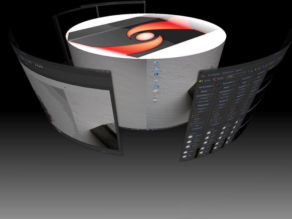 Má i efekty "roundcube" (válec) a "videowall".