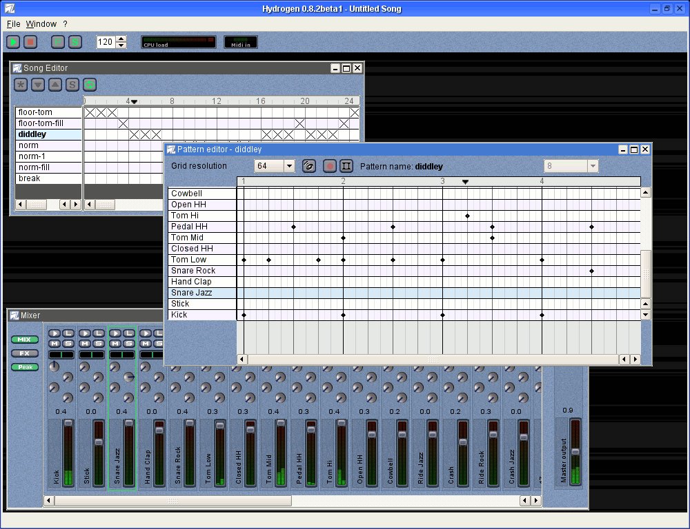 HYDROGEN je software pro hudebníky, umožňující komponování bicích. Implementace lidského faktoru a cítění pomocí funkcí human velocity, human time a swing a synchronizovatelný delay. Program podporuje OSS, JACK a ALSA. Licence: GNU/GPL.