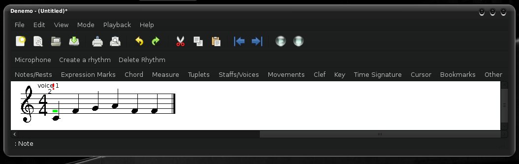 DENEMO je grafická nadstavba nad notačním systémem Lilypond, tedy to není seqencer. Je to především nástroj pro kvalitní sazbu not.