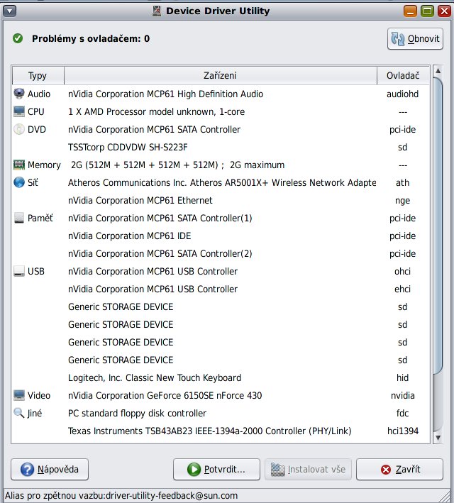 Podpora HW je velmi dobrá, ovladače jsou v jádru.