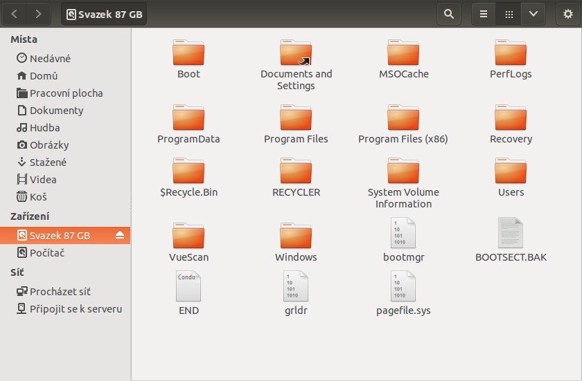 nic takovýho tam nemám, mám tam jenom ty složky jako (mám Linux v aj) home, desktop atd... potom network a mezitim nic jako zařízení není, potom žádný svazek, počíteč nic takovýho tam nemám..