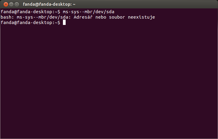 Pokud máte Windows 7 na disku /dev/sda, obnovu MBR proveďte v terminálu takto: