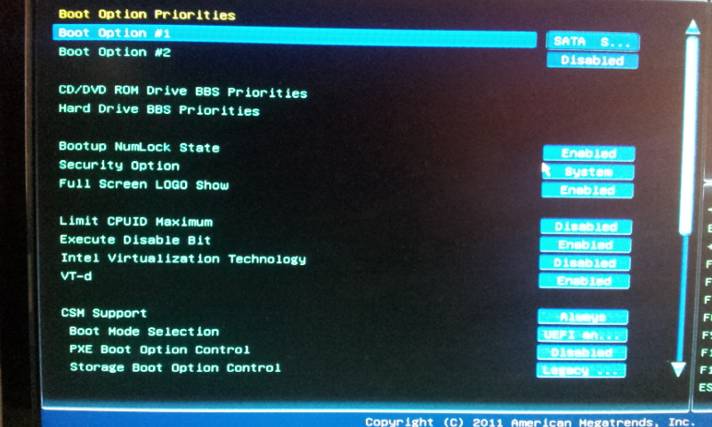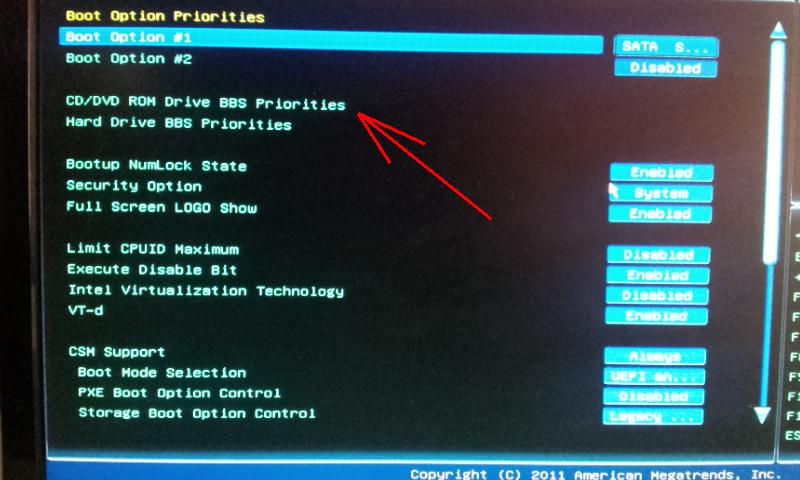 Boot Option #1 by měla být nastavena tvoje CD-Romka. Je to tak?
