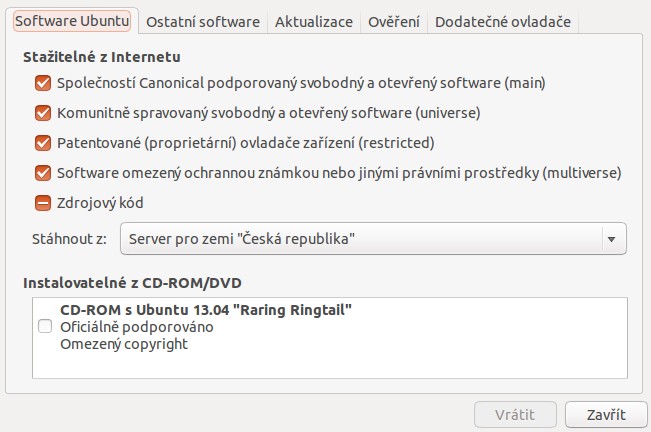 ) Popřípadě ještě v tabu Ostatní Soft zaškrtni Patnery Canonicalu a Nezávislé vývojáře