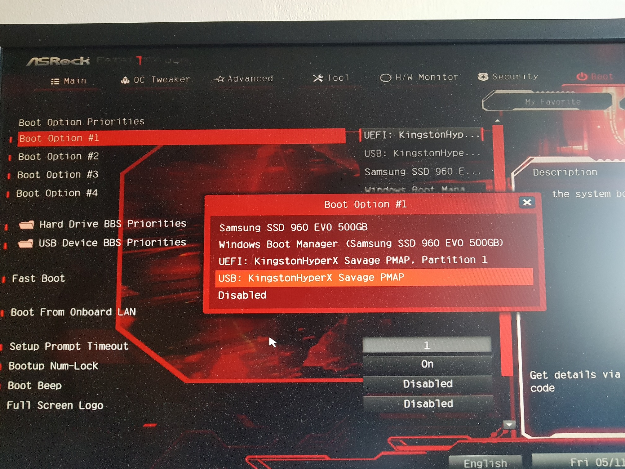 V možnosti bootu z flashky jsem měl totiž 2 možnosti: