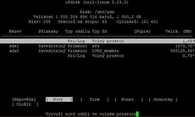 Jenze jsi musel vybrat, jestli se ten disk rozdeli na oddily a v jakem pomeru.