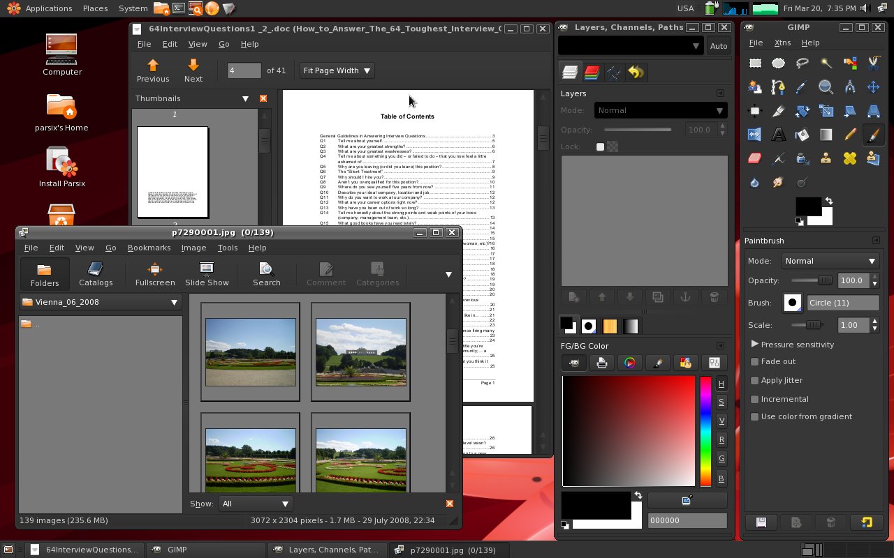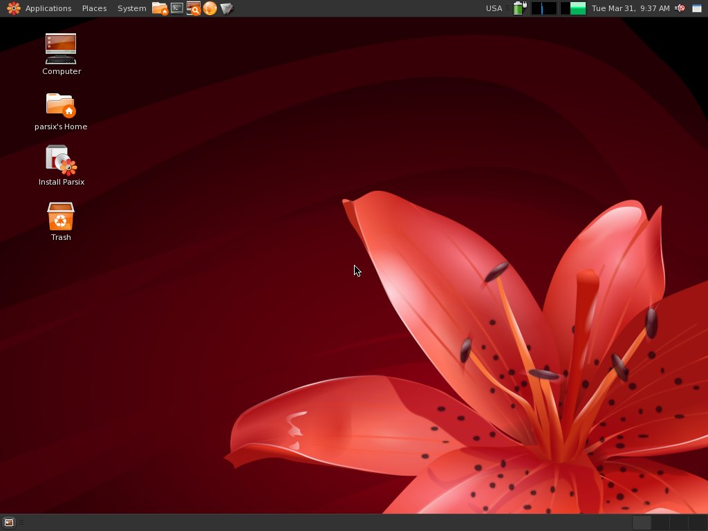 Tedy už víme, že Parsix je původem íránské distro vycházející z KANOTIXu (a ten zase vychází z Knoppixu) a je založené na Debianu. Jako hlavní desktop používá hezky vyladěné Gnome a specializuje se na dobrou podporu nového hardwaru a přizpůsobení konfigurace k okamžitému použití. Jeho autorem je Alan Baghumian.