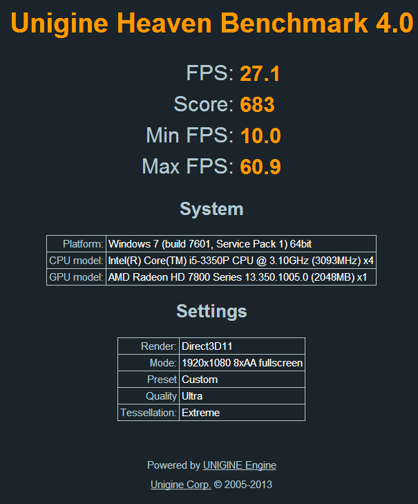Re: Změřte výkon s ostatními v Unigine Heaven 4.0