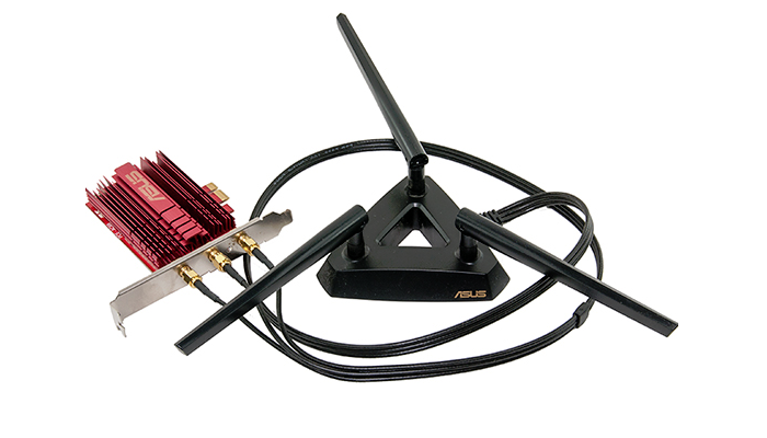 Asus PCE-AC68 je pro stolní počítač určitě lepší volbou než externí bezdrátové adaptéry. Namísto titěrné integrované anténky má hned tři odnímatelné externí antény, které lze navíc díky stojánku s prodlužovacími kabely umístit na příhodnější místo než je zadnice počítače. Bezproblémový provoz i při vysokém vytížení zajišťuje pasivní hliníkový chladič.