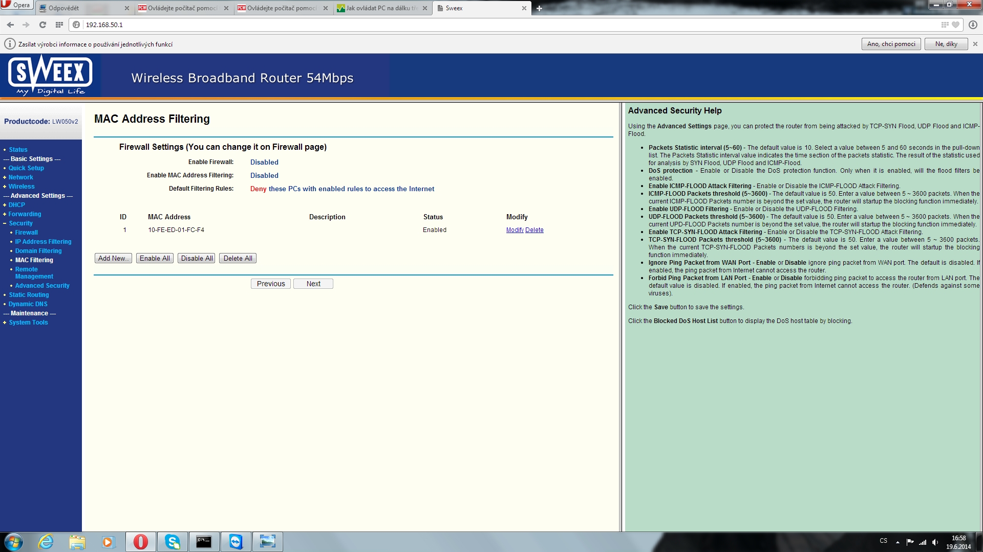 A tady jsem zadal MAC adresu od ethernet portu.
