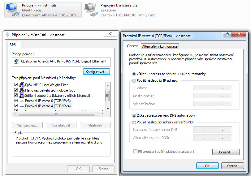 Zkusil sem udělat základní diagnostiku a IP adresa začíná 169.*.*.* a výchozí brána tam není, takže někde musí být problém, ale když spustím Win z jiného HDD, tak to jde normálně, takže chyba musí být někde ve Windowsech...