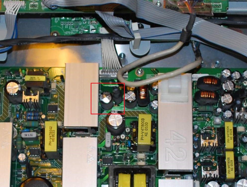 Nedávno jsem se pokoušel o opravu TV. Sice jsem tomu moc nedával, ale povedlo se. Závada byla ve zdroji - bouchlý elektrolyt. Z přiloženého obrázku můžete vidět, že umístění elektrolytu je opravdu strategické - je těsně vedle chladiče výkonových tranzistorů. Televize stála něco přes tři pětky, ze servisu za "mírný" poplatek vrácena jako neopravitelná.