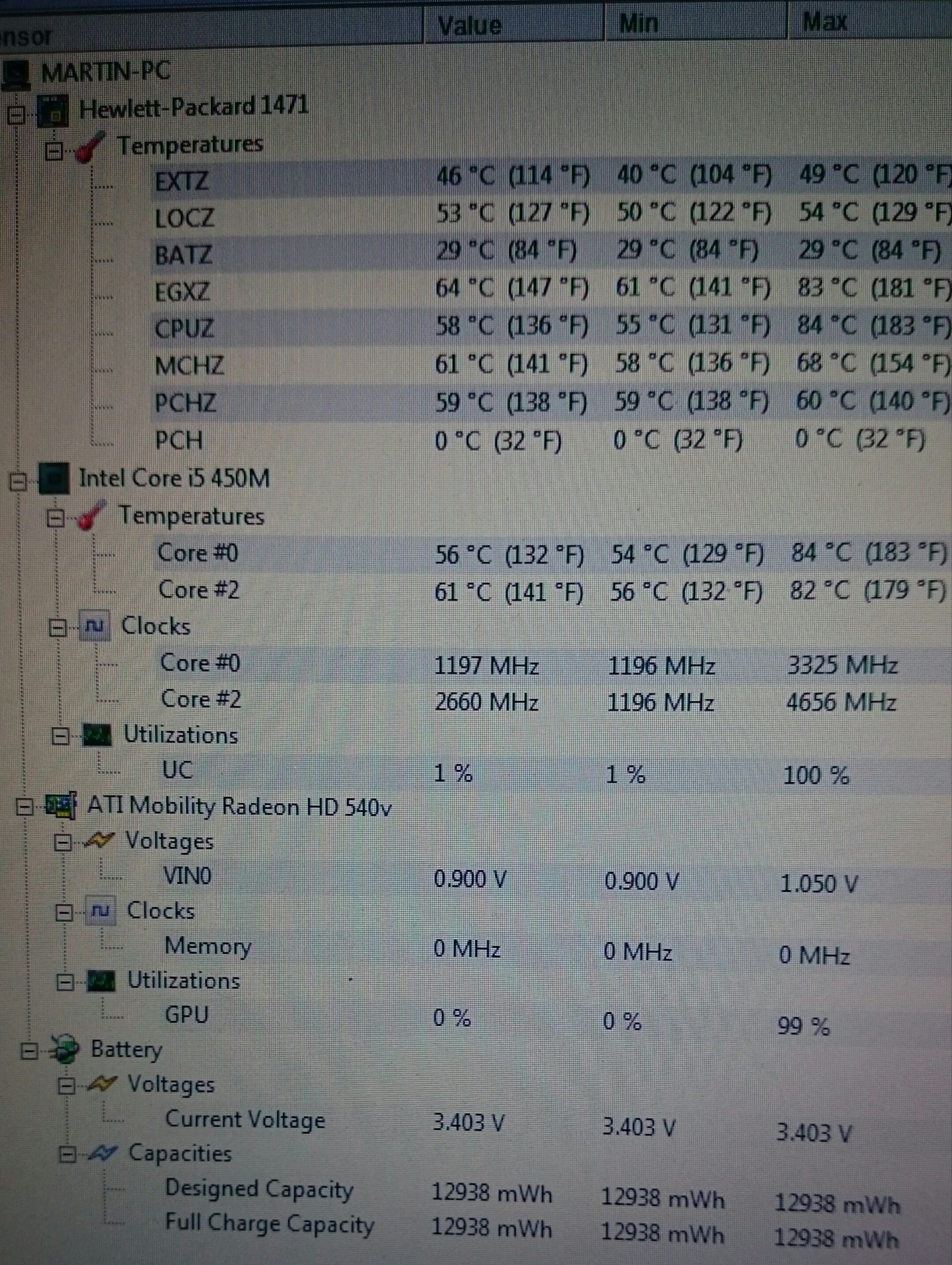 Jinak jsem měřil i teploty (viz. obrázek).. Co si o nich myslíte? Hlavně ohledně těch maximálních..